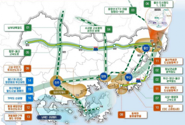 부울경을 하나로 연결하는 부산-양산-울산 광역철도, 동남권순환 광역철도의 예비타당성조사 등 절차를 차질없이 진행해 성공적으로구현할 계획이라고 전했다.