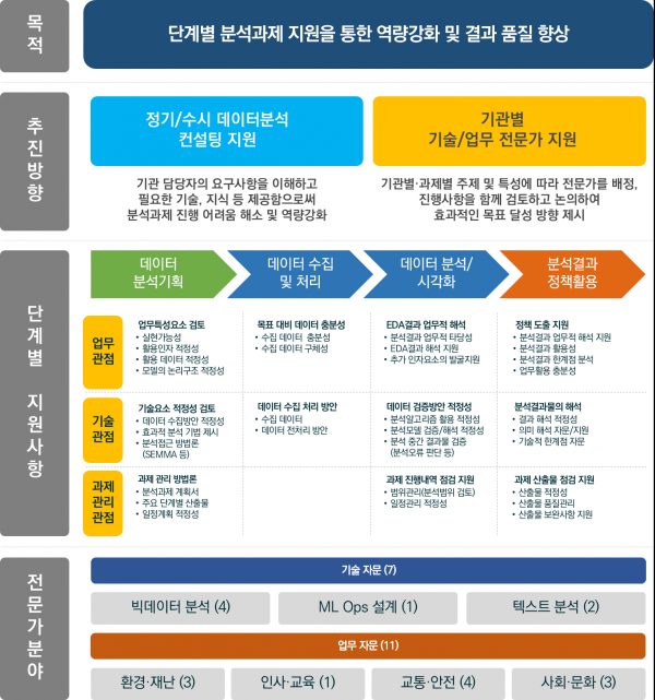 전문가들은 기관별 문제해결 지원을 위해 매월 1회 이상 정기적으로 기관에 직접 방문해 과제기획부터 데이터 수집·전처리, 분석 및 결과 활용까지 데이터분석 전 과정에서 발생하는 문제해결을 지원했다.
