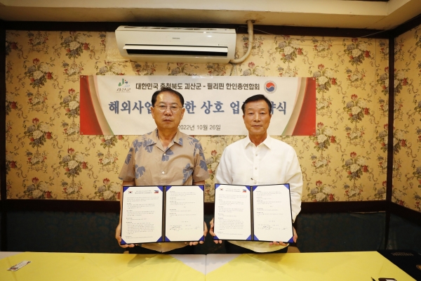 또한, 10월말 송인헌 괴산군수가 필리핀 현지 출장해 필리핀 한인총연합회와 농식품 수출 MOU를 체결하는 등 수출산업육성을 위한 발빠른 행보를 이어왔다.