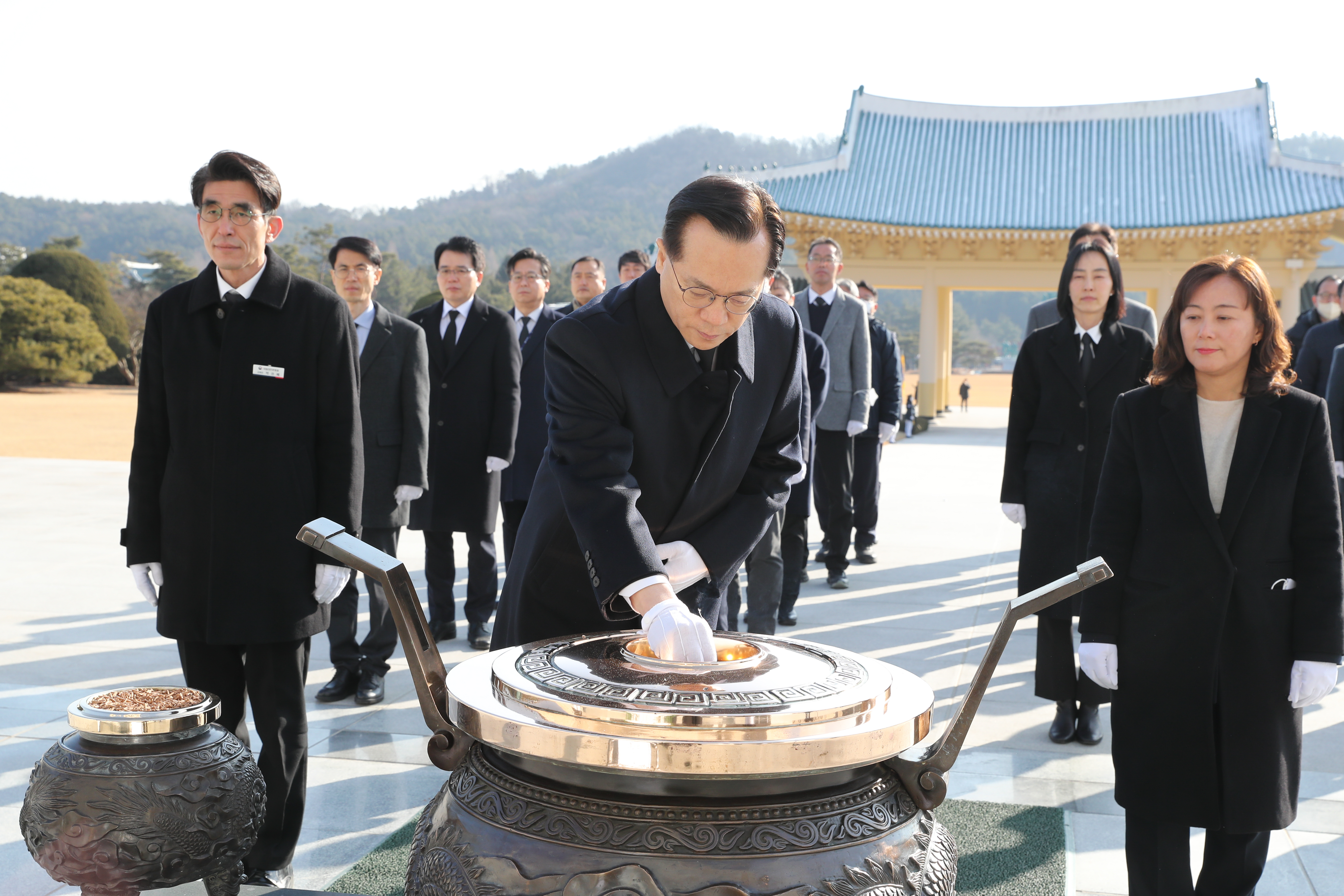 헌화·분향, 선국선열과 호국영령에 묵념을 마친 이상래 청장은 방명록에 “순국선열의 숭고한 뜻을 새겨 대한민국의 재도약을 성취하겠습니다” 라고 적었다.