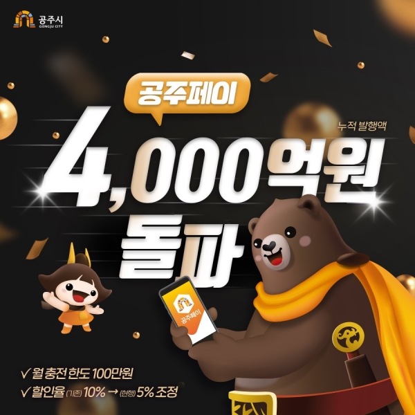 [세종타임즈] 충남 최초로 공주시가 도입한 모바일 지역화폐 ‘공주페이’가 누적 발행액 4,000억원을 돌파했다.