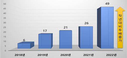 소프트웨어 의료기기 임상시험계획 승인 건수는 지난 5년간 꾸준히 상승해 2018년 6건 대비 지난해 49건으로 큰 폭으로 증가했다.