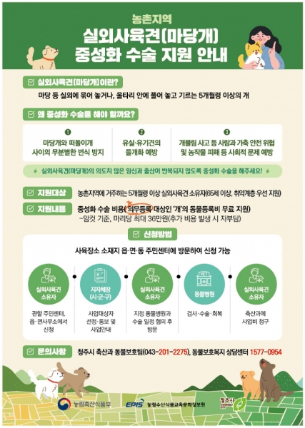 [세종타임즈] 청주시는 1일부터 농촌지역 실외사육견 중성화 수술 비용을 지원한다.
