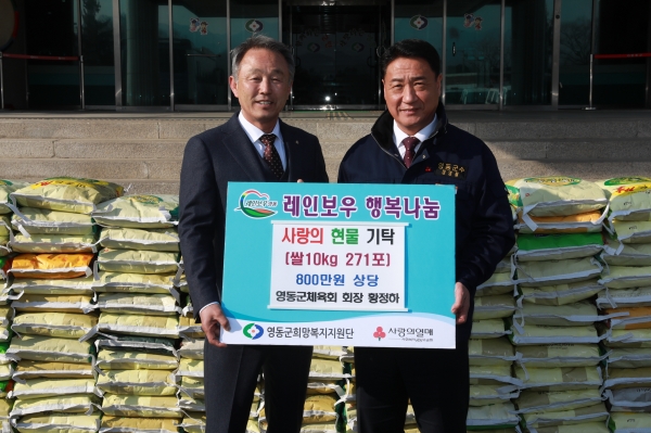 군은 기탁된 쌀을 영동군 관내 저소득층과 경로당 등에 전달할 예정이다.