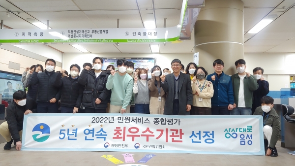 [세종타임즈] 음성군이 행정안전부와 국민권익위원회가 공동 주관한 ‘2022년 민원서비스 종합평가’에서 최고등급을 받아 5년 연속 최우수 기관으로 선정됐다.