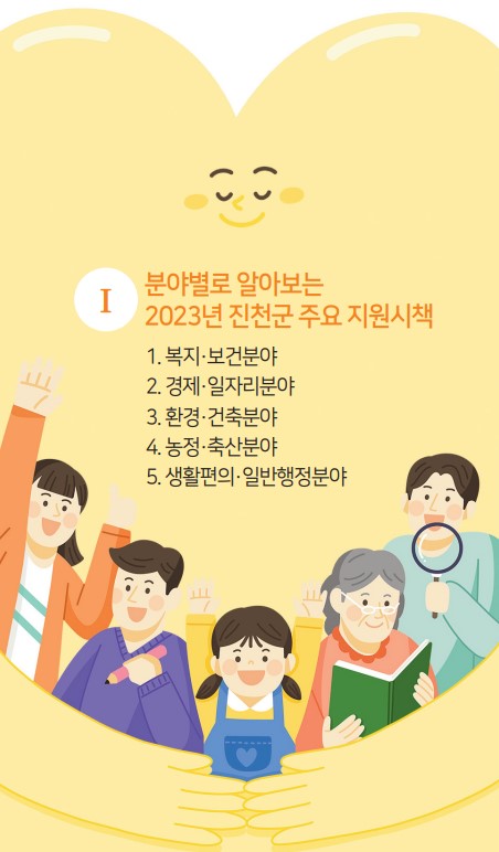자료 내에는 임산부·젖먹이, 영·유아기, 취학 전 아동, 학생, 성인, 어르신에 이르는 단계별 지원 내용과 신청 절차, 문의처 등이 수록돼 있으며 군청, 읍·면 행정복지센터, 도서관, 보건소 등에서 수령할 수 있다.