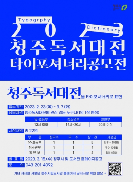 [세종타임즈] 청주시가 오는 4월 개최되는 2023 청주독서대전의 사전 행사인 ‘타이포셔너리 공모전’을 운영한다고 20일 밝혔다.