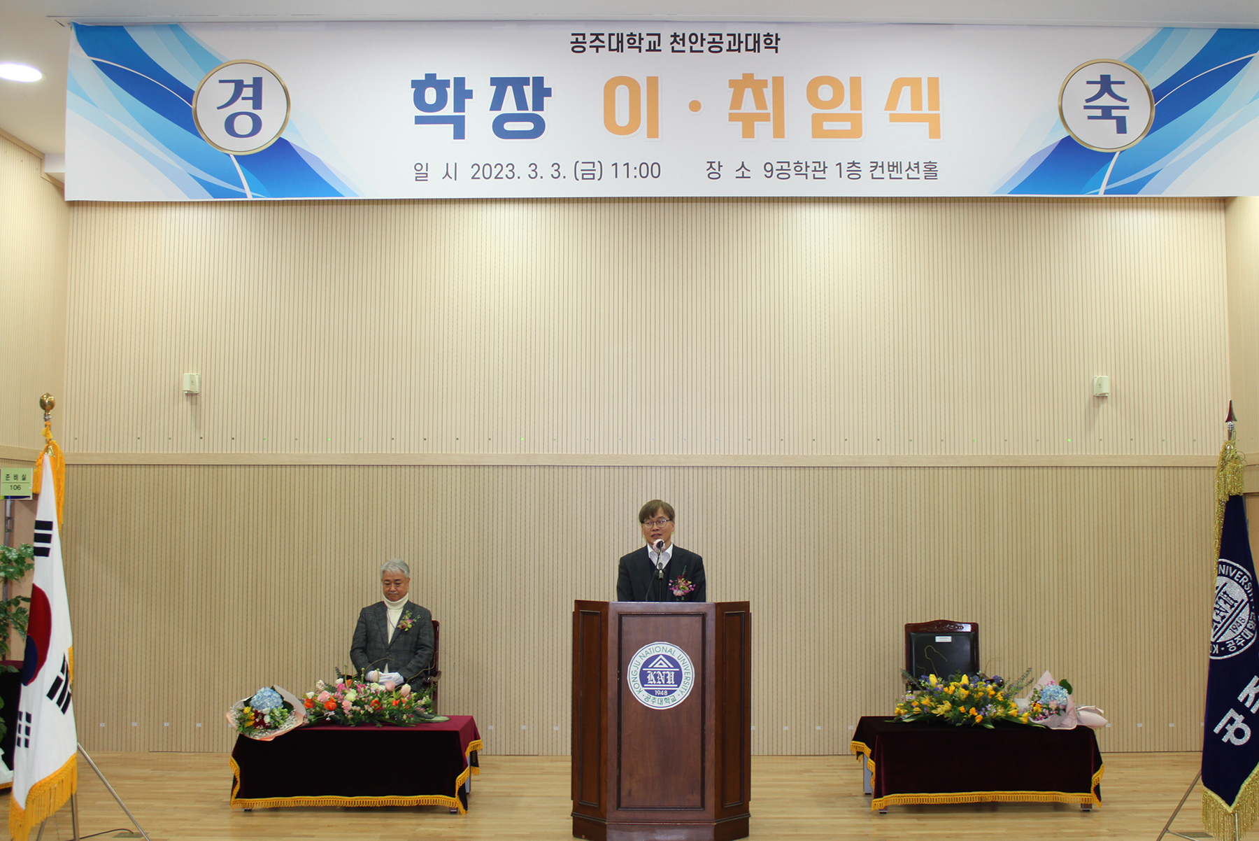 [세종타임즈] 국립공주대학교 천안공과대학은 3일 천안캠퍼스 컨벤션홀에서 16대 김재웅 학장 이임식과 17대 양금철 학장 취임식을 동시에 개최하였다.