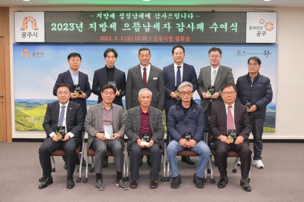 [세종타임즈] 공주시는 3월 3일 ‘납세자의 날’을 맞아 지방재정 확충에 크게 기여한 법인과 개인을 으뜸납세자로 선정하고 감사패를 수여했다.