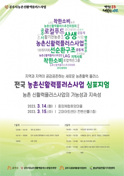 [세종타임즈] 공주시는 오는 14~15일 아트센터 고마에서 ‘전국 농촌신활력플러스사업 심포지엄’을 개최한다고 밝혔다.