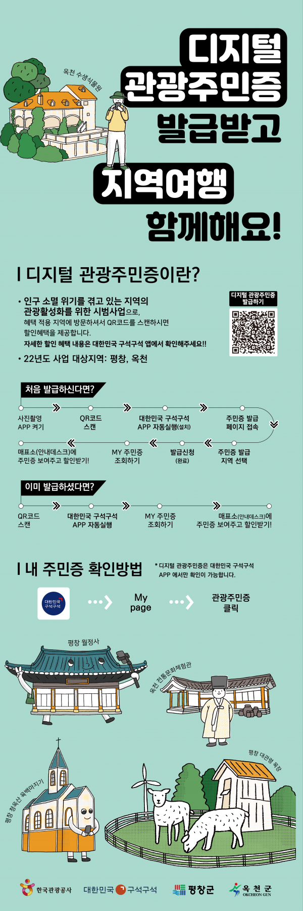 지난 해 시범사업 추진 지역인 강원 평창군과 충북 옥천군에 이어 올해는 인천 강화군, 강원 정선군, 충북 단양군, 충남 태안군, 전북 고창군, 전남 신안군, 경북 고령군, 경남 거창군, 부산 영도구 등 총 9개 지자체를 신규로 선정해 모두 11개 지역에서 디지털 관광주민증 사업을 추진한다.