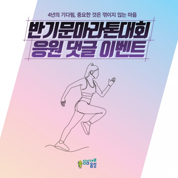 [세종타임즈] 음성군은 전 국민을 대상으로 ‘4년의 기다림, 반기문 마라톤 대회 응원 댓글 달기’ SNS 이벤트를 13일부터 다음 달 10일까지 진행한다.