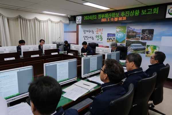 군은 지난 13일 군청 상황실에서 정영철 영동군수 주재로 각 부서 부서장이 참석한 가운데‘2024년도 정부예산확보 추진상황 보고회’를 가지며 국비확보체제를 점검했다.
