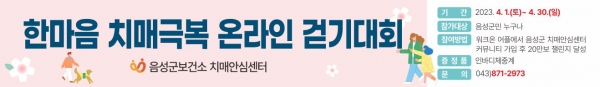 한마음 치매 극복 걷기대회는 매년 치매에 대한 사회적 관심과 적극적인 동참을 유도하고 치매 인식개선을 위해 치매안심센터에서 주관·주최하는 행사로 다음 달 1일부터 30일까지 한 달간 온라인 걷기 행사가 진행된다.