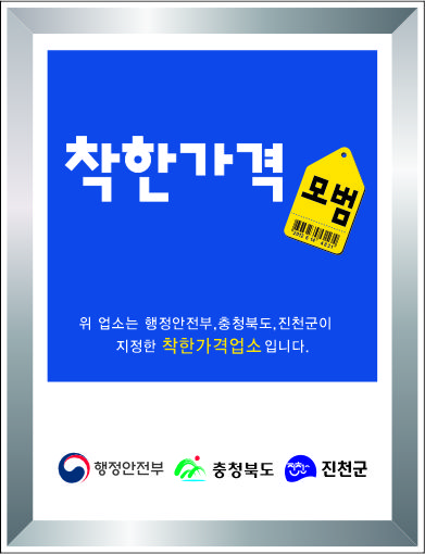진천읍 소재 착한가격 업소는 고려식당 김밥세상 사석한우촌 마당한우촌 명가떡집 오가네착한밥집앤포차 미소가득꼬마김밥 양양만두 어진 연형식당 외갓집 오미경칼국수 청해식당 골목식당 또또크리닝 등 15곳이다.