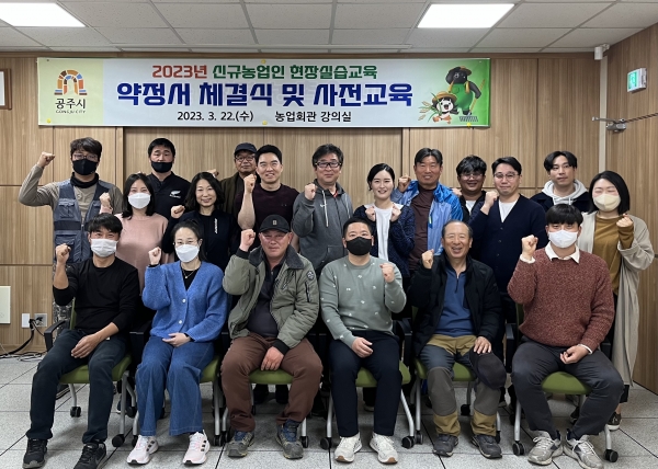[세종타임즈] 공주시는 지난 22일 농업기술센터 농업회관에서 초보 귀농인 12팀을 대상으로 신규농업인 현장실습교육 약정서 체결 및 사전 교육을 실시했다.