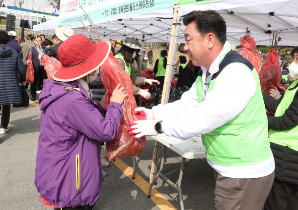 이범석 청주시장도 행사에 동참해 직접 시민들에게 나무를 배부했다.