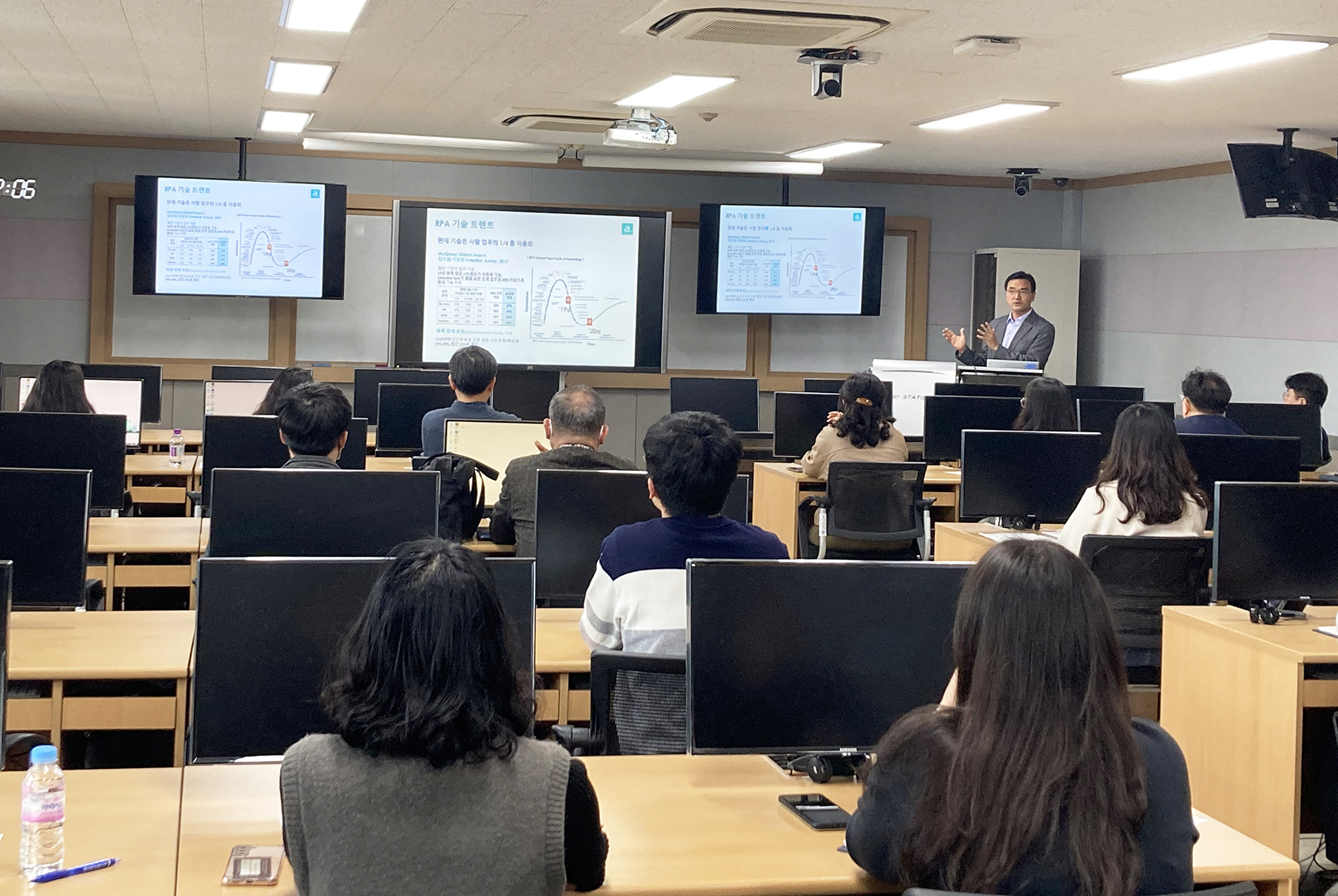 이번 강의는 포스코DX RPA사업추진반 강훈철 부장이 교육을 진행하였으며, RPA 시장 환경과 기술 트렌드 분석, RPA 과제 선정의 기준, 학사 행정 업무 적용 사례 등을 공유하였고, 교육 참가자와의 자유로운 질의응답을 통해 참여자들로부터 높은 관심과 호응을 얻었다.