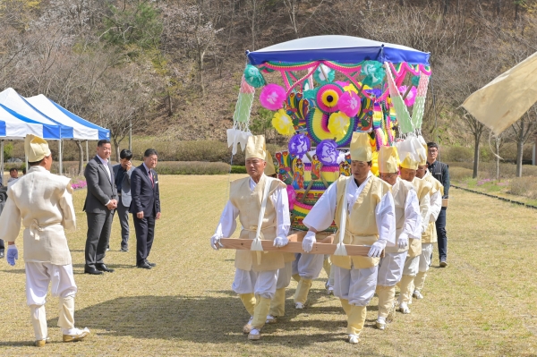이날 시연은 장례문화는 간소화로 사라져가는 전통 장례문화를 보존하고 고인과 짧은 이별 과정에서 생기는 유족의 아쉬움을 달래드리기 위해 실제 상황을 연출해 꽃상여를 재현했다.
