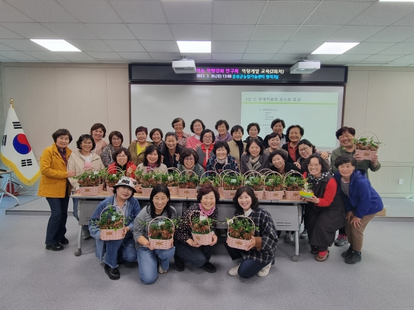 교육에 참여한 한 회원은 “원예 활동을 통해 심신의 안정과 마음을 치유하는 기회를 갖게 돼 뿌듯하다”며 “취득한 자격증을 활용해 소외된 이웃과 아동을 대상으로 나눔 실천에 앞장서는 농촌 여성이 되겠다”고 포부를 밝혔다.