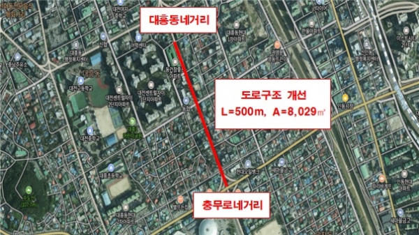 이번에 구조를 개선하는 구간은 총 500m, 면적 8,029㎡이며 기존 최대 8% 이상이었던 도로 경사를 규정에 맞춰 1.5 ~ 2%로 정비한다.