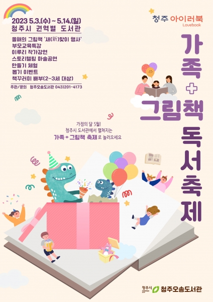 이번 ‘가족+그림책 독서축제’는 2023년 올해의 그림책 새맞이행사를 시작으로 책꾸러미 배부 강연 공연 만들기 체험 등을 통해 시민들에게 청주 아이러북 사업을 알리고 영유아와 가족들에게 책으로 소통하는 기회를 제공하고자 마련했다.