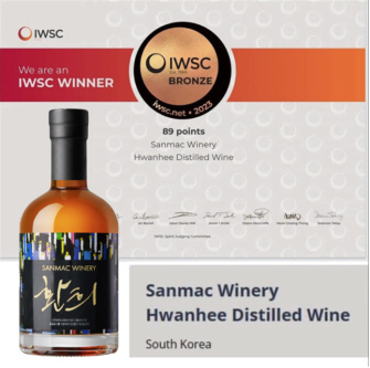 산막와이너리가 이번 IWSC에서 브론즈상을 수상한 제품 '환희'는 산막와이너리에서 직접 정성스럽게 재배한 포도로 만든 고품질의 와인을 한방울 한방울 증류해 빚어낸 증류주이다.