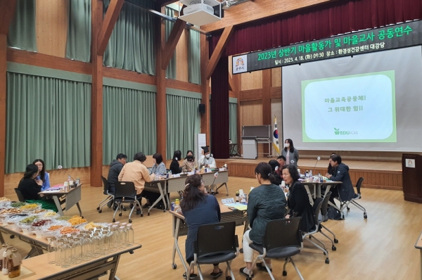 [세종타임즈] 공주시는 지난 18일 공주환경성건강센터 대강당에서 관내 마을활동가 및 마을교사, 공주교육지원청 관계자 등 30여명이 참여한 가운데 상반기 공동연수를 개최했다.