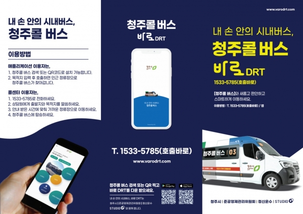 수요응답형 청주콜버스는 일정한 노선과 운행시간표 없이 이용 수요에 따라 탄력적으로 운행하는 교통서비스로 수요자가 휴대폰 앱 또는 전화를 통해 호출하면 차량이 수요자를 찾아가 하차 지점까지 운행하는 이용자 중심의 대중교통 서비스다.