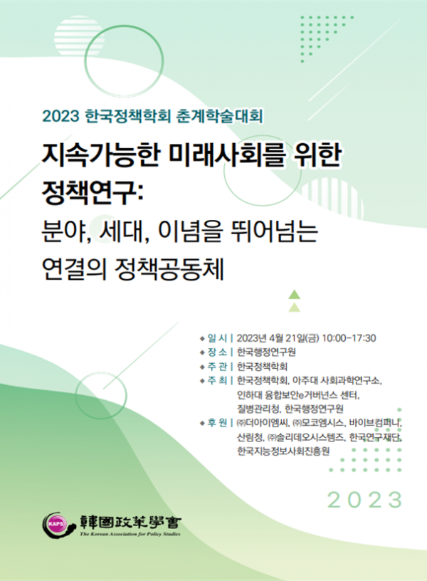 이번 춘계학술대회는 ‘지속가능한 미래사회를 위한 정책연구’를 주제로 급변하는 미래사회에 대한 대응방향에 대해 정부부처, 공공기관 및 민간 전문가가 함께 모여 다양한 시각을 공유하고 논의하는 자리이다.