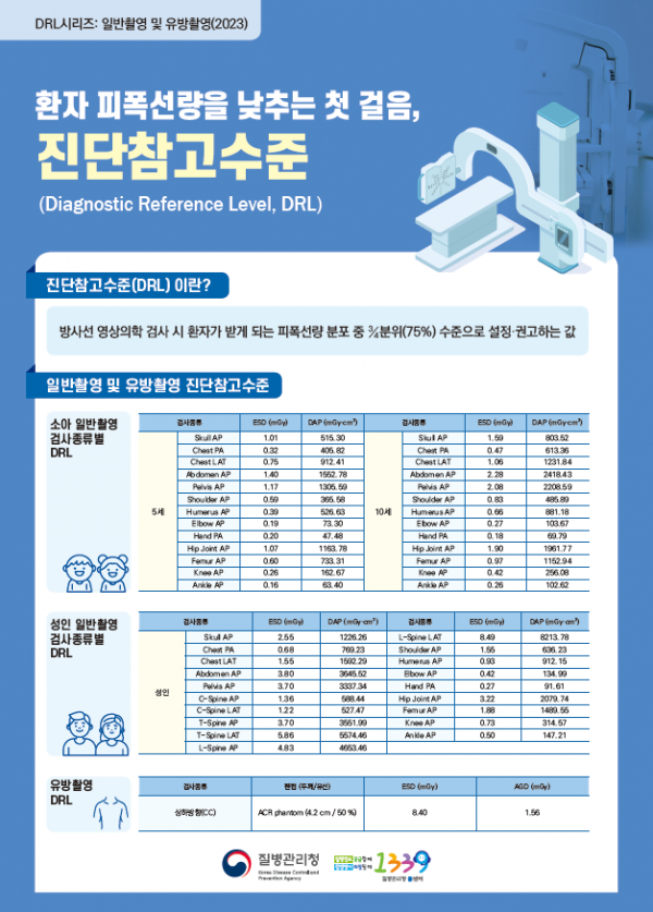 이번 발표한 진단참고수준은 ’19년도에 배포한 기준을 재설정한 것으로 의료환경 변화 등을 고려해 최적의 방사선을 사용하기 위한 권고 기준을 제시했다.