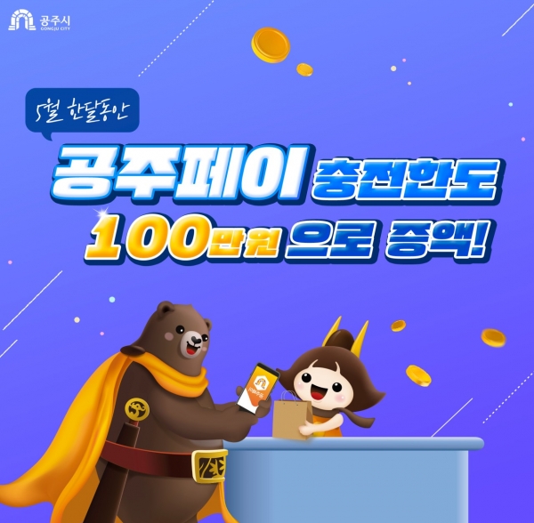 [세종타임즈] 공주시가 모바일 지역화폐인 ‘공주페이’의 충전 한도를 100만원까지 한시적으로 상향한다고 2일 밝혔다.