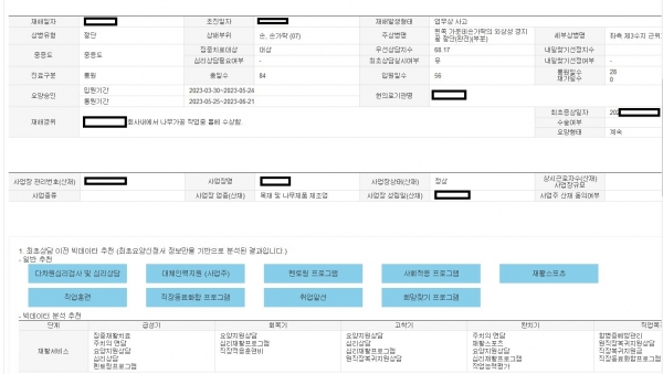 지능형재활추천시스템은 공단이 그동안 축적해온 산재·고용 빅데이터를 기반으로 산재 근로자의 개인별 특성을 분석해 요양 기간 인공지능으로 추천된 최적의 서비스를 제공하는 시스템으로 공단 연구원과 실무자들이 자체 개발했다.