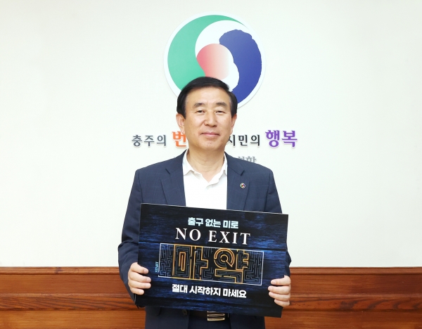 [세종타임즈] 조길형 충주시장이 4일 오전 마약범죄 예방을 위한 ‘NO EXIT’릴레이 캠페인에 참여했다.
