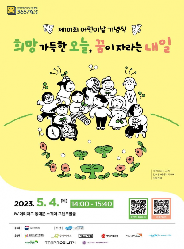 [세종타임즈] 보건복지부는 제101회 어린이날을 맞아 5월 4일 오후 2시 JW메리어트 동대문스퀘어 그랜드볼룸홀에서 ‘2023년 어린이날 기념식’을 개최했다.