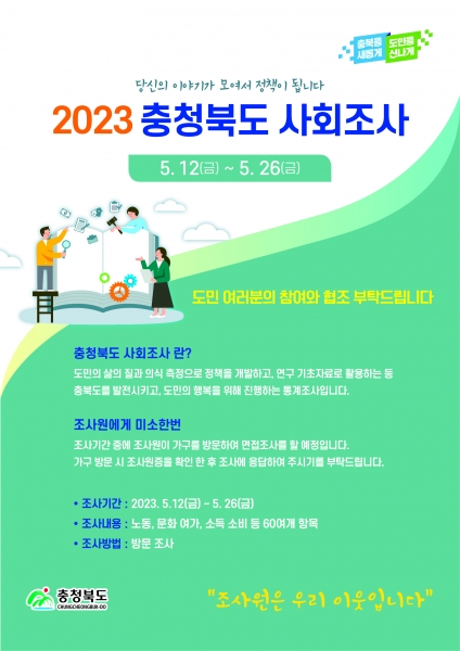 [세종타임즈] 음성군은 오는 12일부터 26일까지 15일간 음성군 지역 내에서 표본으로 선정된 960가구의 만 13세 이상 가구주 및 가구원을 대상으로 ‘2023년 충청북도 사회조사’를 실시한다.