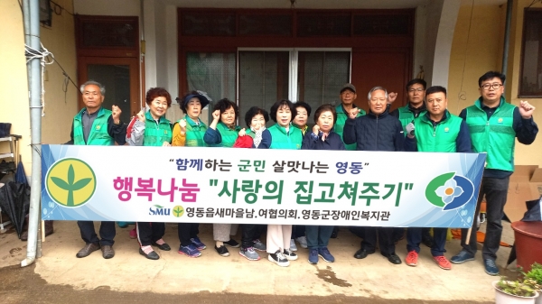 이번 집수리 대상은 설계리 독거노인 가정과 하가리 장애인 가정으로 영동군새마을회와 영동군장애인복지관의 후원으로 이루어졌다.