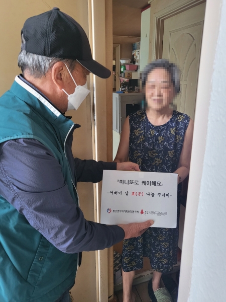 위원들은 대상자 집을 일일이 방문해 노인에게 필수 영양소인 단백질 보충 음료 전달과 카네이션도 달아드리며 가족처럼 시간을 보냈다.