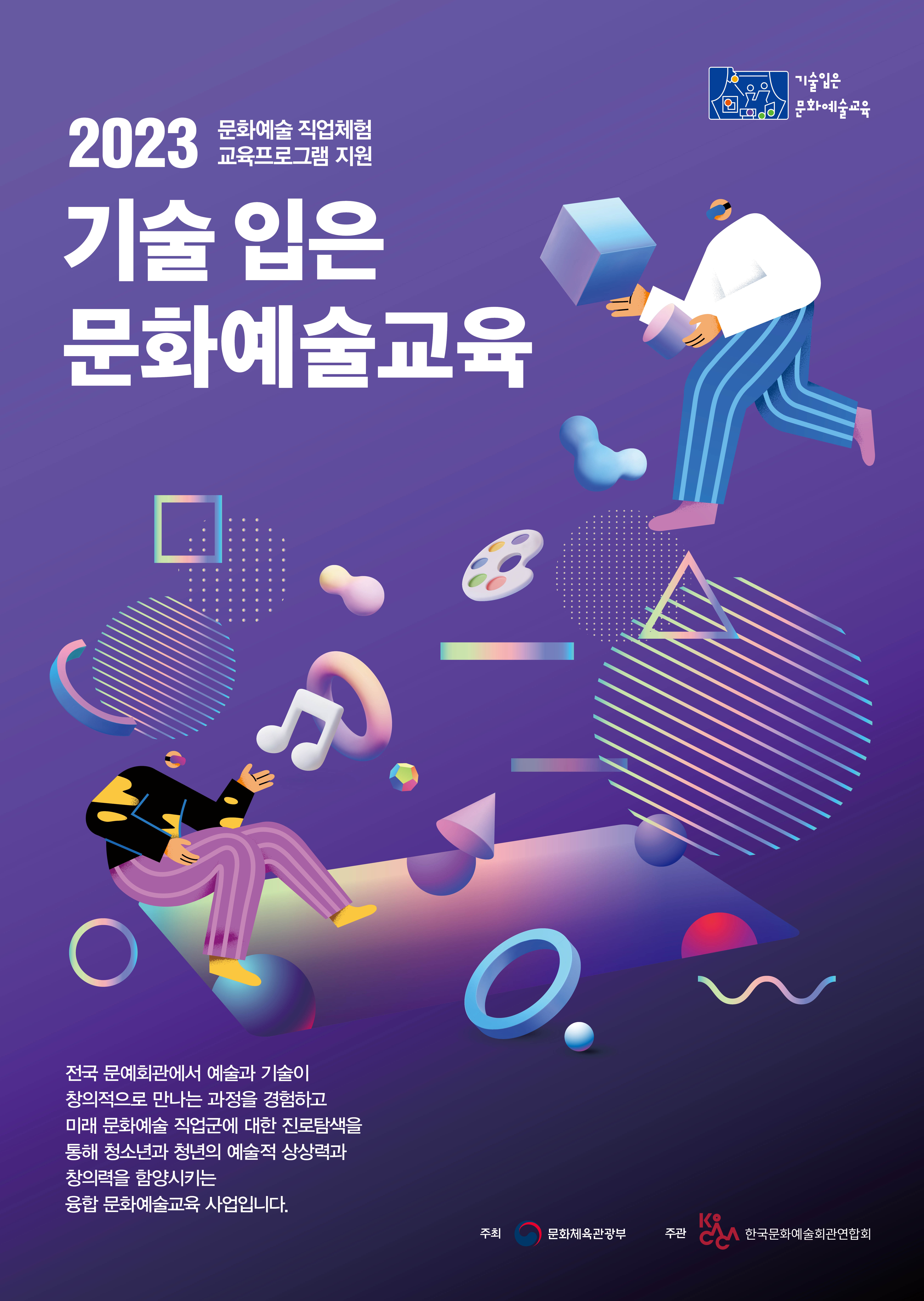 2023 기술 입은 문화예술교육은 청소년들이 관내 문화예술회관을 방문하여 예술과 기술의 융합 교육을 통해 진로 탐색 시간을 갖고 예술적 상상력과 창의력을 함양할 수 있도록 기획된 사업이다.
