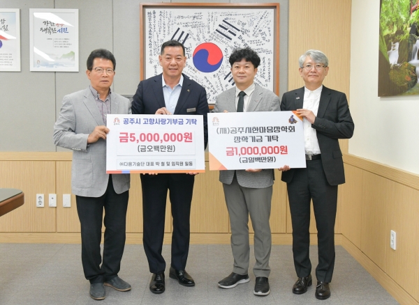 [세종타임즈] 공주시는 다음기술단 박철 대표와 임직원들이 고향사랑기부금과 공주시한마음장학회 장학기금을 지난 11일 전달했다고 밝혔다.