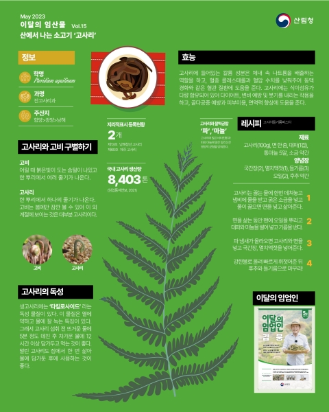 5월 이달의 임산물은 ‘고사리’다.