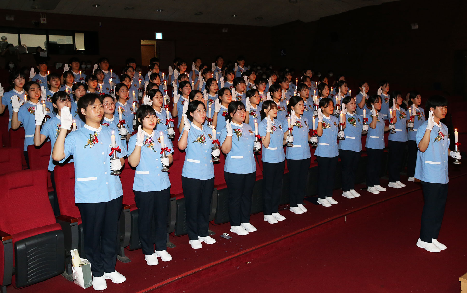 나이팅게일 선서식 행사는 김재웅 부총장을 비롯한 주요 보직교수, 간호학과 교수, 보건의료 내외빈, 학생 등이 참석한 가운데 국민의례, 나이팅게일 Nursing Pin 수여선언 및 수여, 나이팅게일 선서에 이어 격려사와 축사, 발전기금 기탁자 감사장수여, 장학증서 수여 순으로 진행됐다.