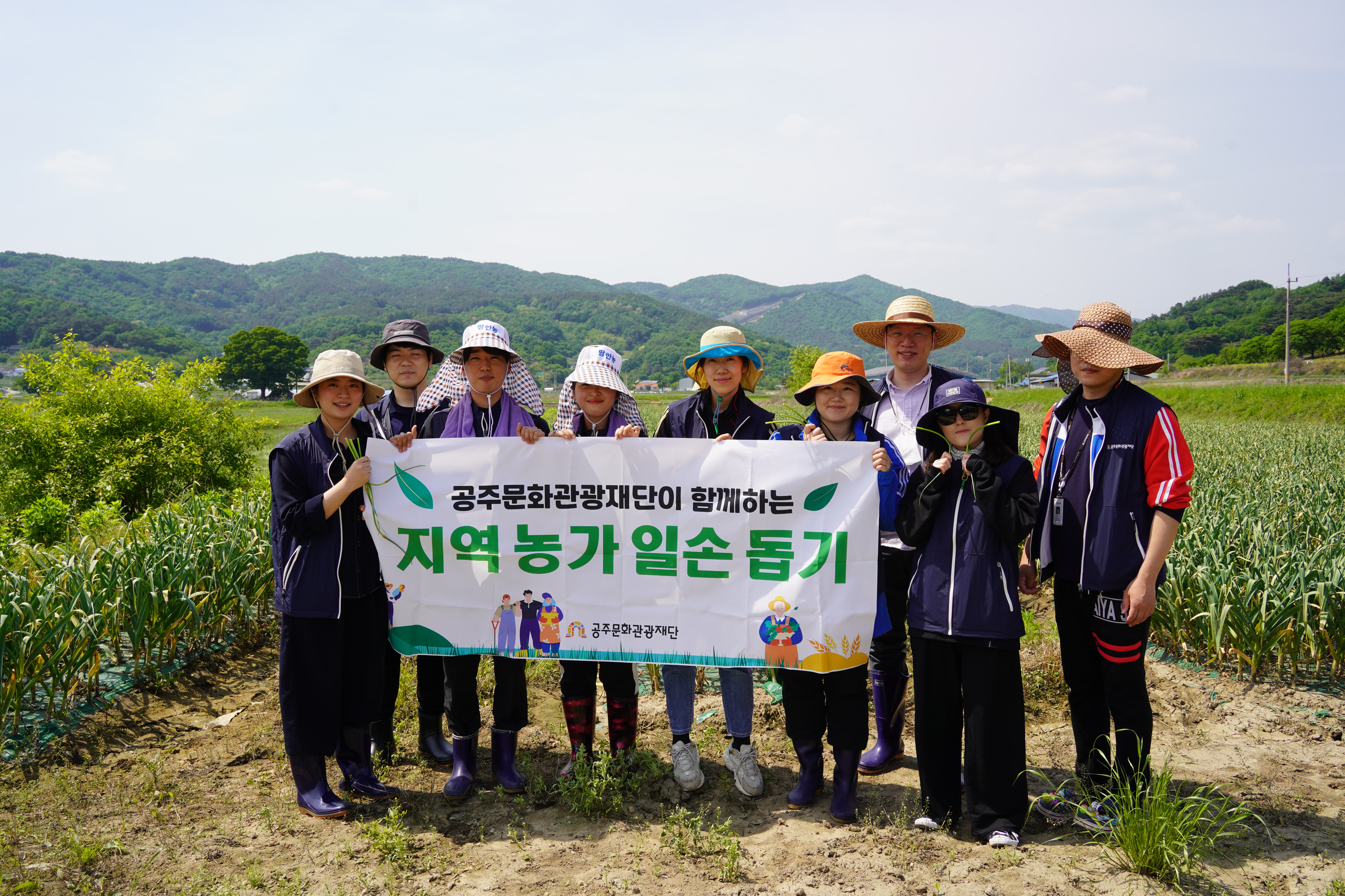 이번 봉사활동은 최근 심각한 농촌인력난 및 인건비 상승으로 어려운 여건 속에 노동집약도가 높은 지역농가에 도움을 주고자 계획됐다. 재단 임직원 10여명이 참석하여 공주시 관내에 있는 농가를 돕기 위해 마늘쫑 수확과 다듬는 작업 등 일손 돕기에 힘을 더했다.