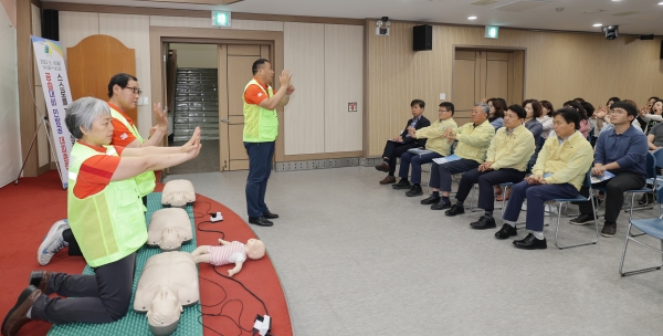 신병대 청주 부시장은 “장기간 중단됐던 민방위훈련이 실시됨에 따라 몸으로 행동요령을 숙달하는 교육이 필요하다” 며 심폐소생술을 직접 실습하는 등 훈련의 필요성을 강조했다.