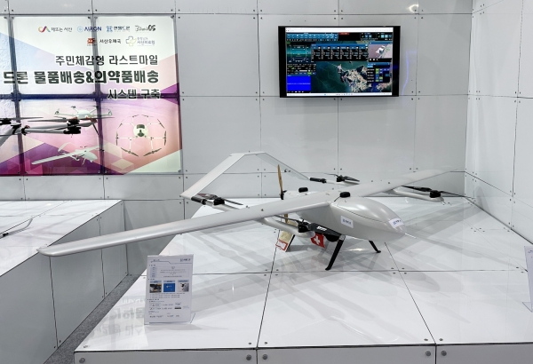 전시관에는 드론 실증도시 구축사업의 핵심 내용인 바다를 넘어 배송하는 수소 드론과, 빠른 속도로 물품과 의약품을 배송할 수 있는 수직이착륙기가 전시된다.