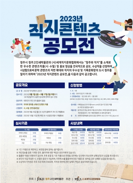 [세종타임즈] 청주시 고인쇄박물관이 주최하고 세계직지문화협회가 주관하는 ‘2023년 직지콘텐츠 공모전’이 개최된다.