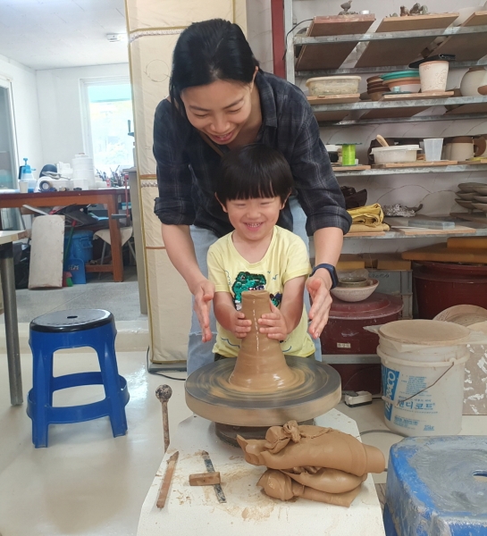 프로그램에 참여한 곽연매 씨는 “빙빙 돌아가는 물레가 부드럽고 도자기 형태가 만들어지는 과정이 신기했다.