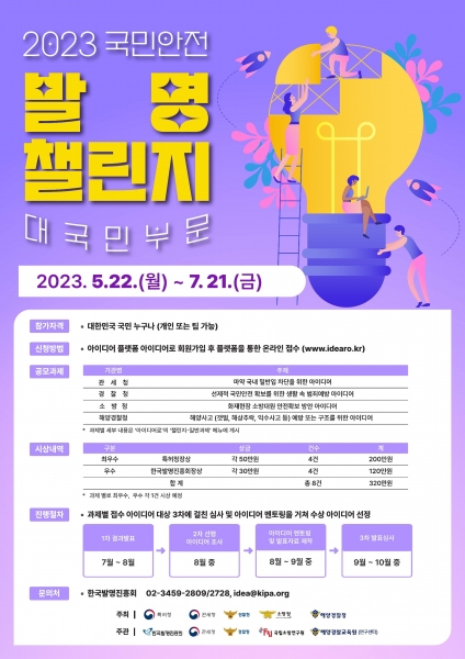 최종 선정된 아이디어에 대한 시상은 국민안전 발명챌린지 공무원부문과 함께 11~12월 중 진행 된다.