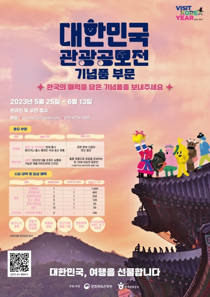 문체부와 공사는 향후 대상 1천만원, 금상 각 400만원, 은상 각 250만원, 동상 각 120만원, 장려상 각 50만원, 입선 각 30만원, 프리미엄 제품상 각 100만원에 해당하는 금액만큼 수상작을 매입해 국내·외 홍보에 활용할 예정이다.