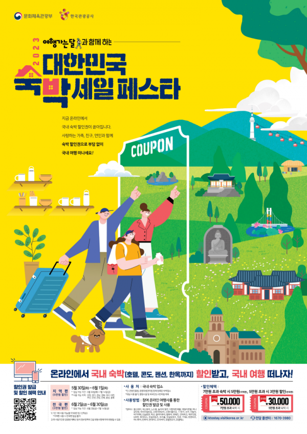 전국 숙박할인 혜택을 제공하는 ‘2023 대한민국 숙박세일 페스타’는 5월 30일부터, ‘놀이공원 할인대전’은 5월 31일부터 시작한다.